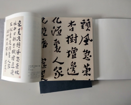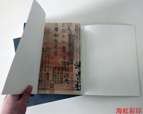 這本書畫冊印刷品的名稱叫《海日流光》 本來封面上還有壓凹、印金等工藝,不過上次已經(jīng)給客戶確認(rèn)過 這次是封面換紙 所以封面沒再做工藝。